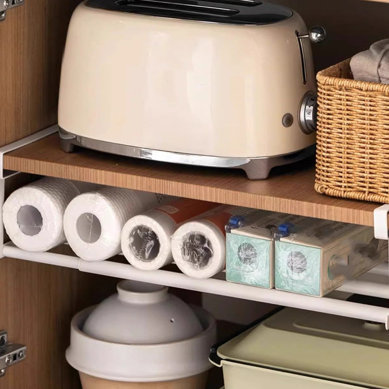 ÚSPORNÝ DESIGN – Efektivně zdvojnásobí váš úložný prostor využitím nevyužitého vertikálního prostoru pod policemi. Je to ideální řešení pro uklizení pracovních desek a skříněk, které vytvoří organizovanější a efektivnější obytný prostor.