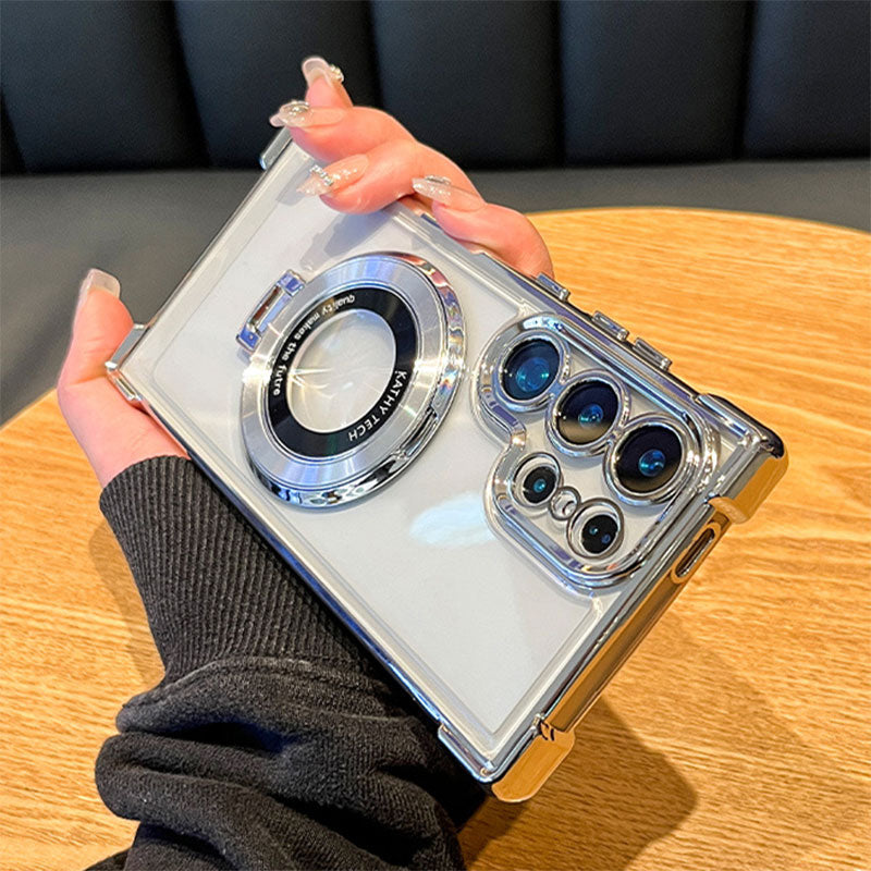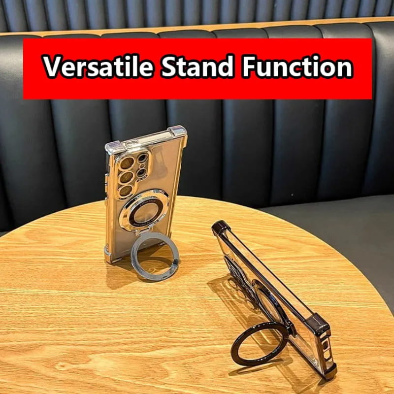 NEVIDITELNÝ MAGNETICKÝ STOJÁNEK: Jedná se o novou řadu, která nabízí funkci magnetického kroužku a stojánku pro telefon. Když je otevřené, vestavěný hliníkový magnetický kroužek stojí stabilně v režimu na výšku nebo na šířku, a když je složené, zadní strana je zcela neviditelná (nebrání použití magnetického nabíjení). Skvěle se hodí k použití na pracovním stole nebo kdekoli jinde, když pracujete nebo konzumujete média!