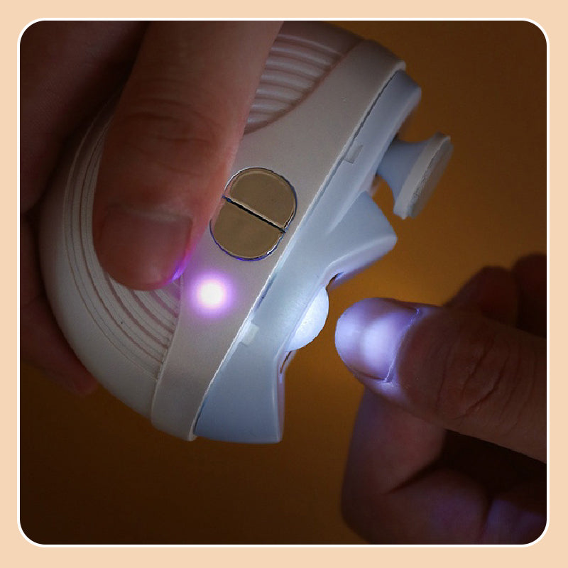 TŘI RYCHLOSTI REGULACE - Díky třem nastavitelným rychlostem je tento nůžky na nehty vhodný pro celou rodinu. Nízká rychlost (modré světlo) je ideální pro kojence (0–3 roky), střední rychlost (fialové světlo) pro dospělé a vysoká rychlost (červené světlo) je ideální pro seniory nebo osoby s tlustšími nehty.