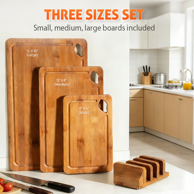 TŘI VERSATILNÍ VELIKOSTI – Snadno zvládnete jakoukoli přípravu jídla. Tato sada obsahuje malé, střední a velké prkénko, které jsou ideální pro oddělení syrového masa, vařených potravin a ovoce a zeleniny, čímž zvyšují hygienu v kuchyni a zabraňují křížové kontaminaci.