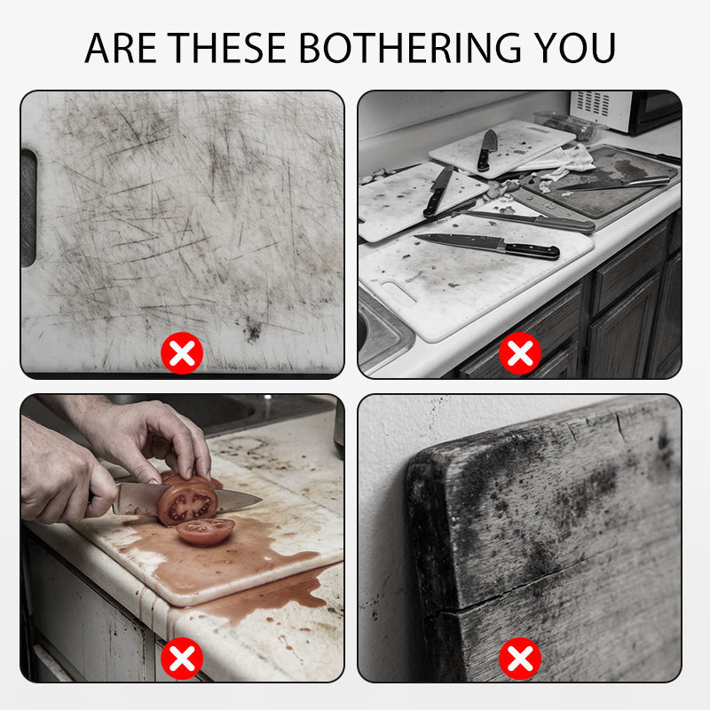 HLUBOKÉ DRÁŽKY NA ŠŤÁVU – Udržujte své pracovní desky čisté a uklizené. Vestavěné hluboké drážky po okrajích účinně zachycují šťávu z ovoce, zeleniny a masa, zabraňují nepořádku a usnadňují úklid po přípravě jídla pouhým otřením.