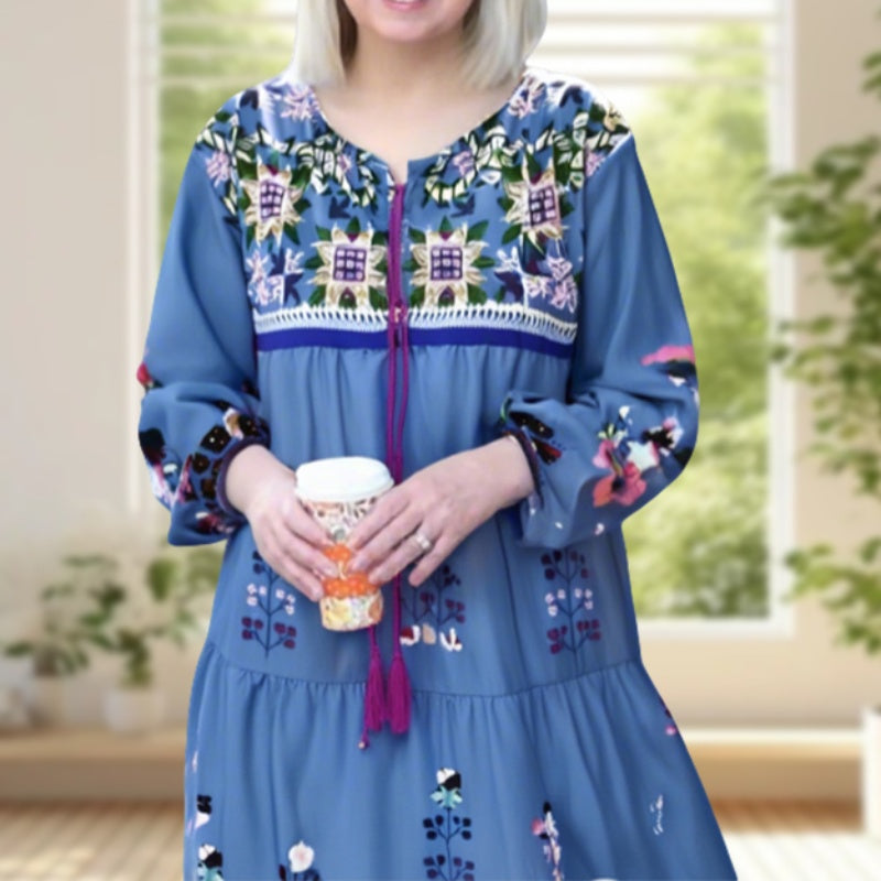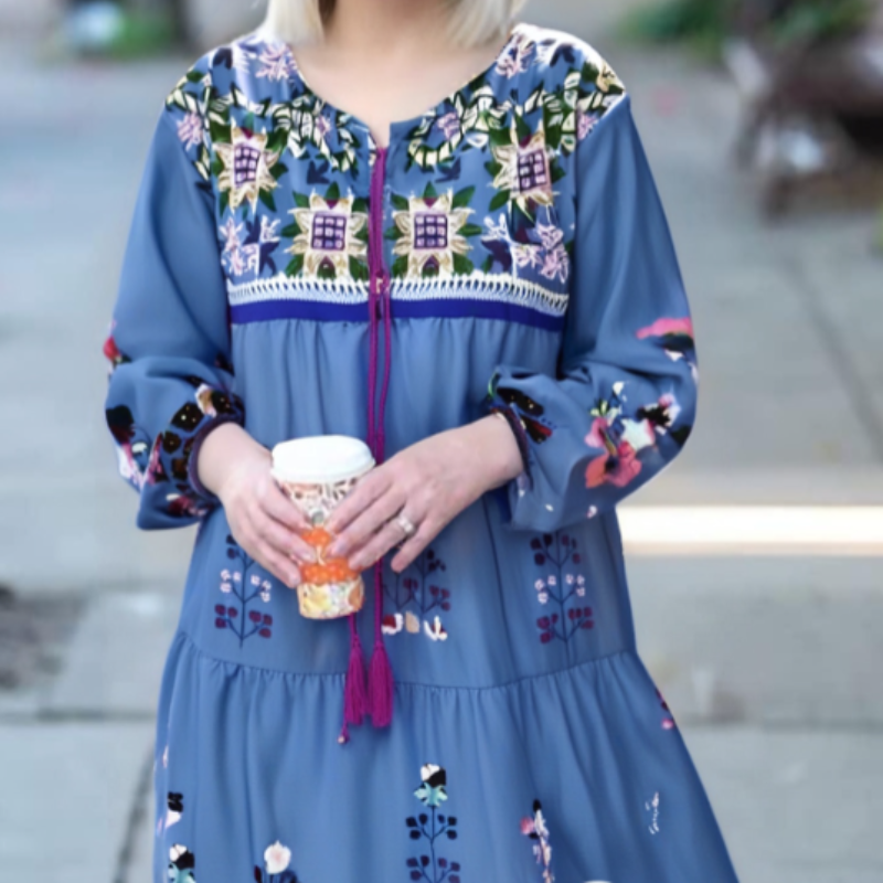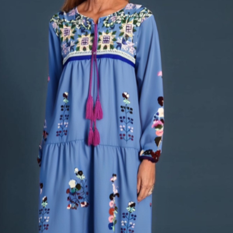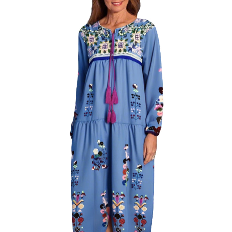 Balení obsahuje: 1×maxi šaty s potiskem v bohémském stylu a ozdobou s třásněmi