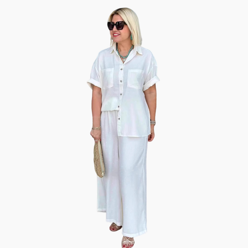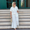 LICHOTIVÁ SILUETA SE ŠIROKÝMI NOHAVICEMI - Široký střih vytváří prodlužující efekt, který se hodí ke všem typům postavy a zároveň umožňuje neomezený pohyb.