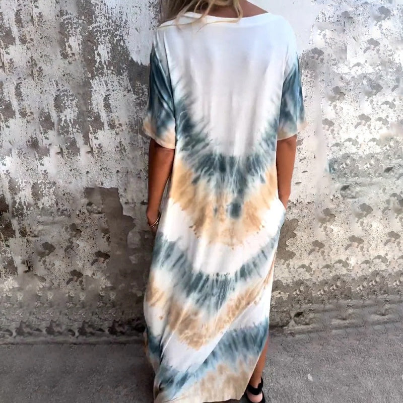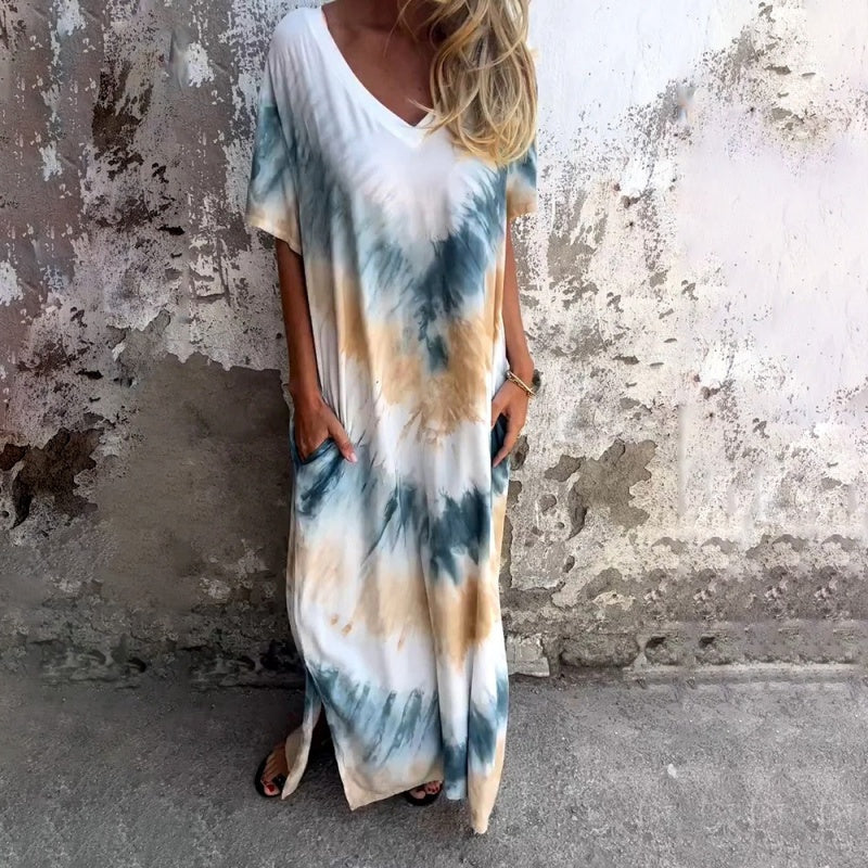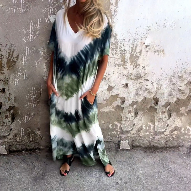 1 * Ležérní volné dlouhé šaty s potiskem do V