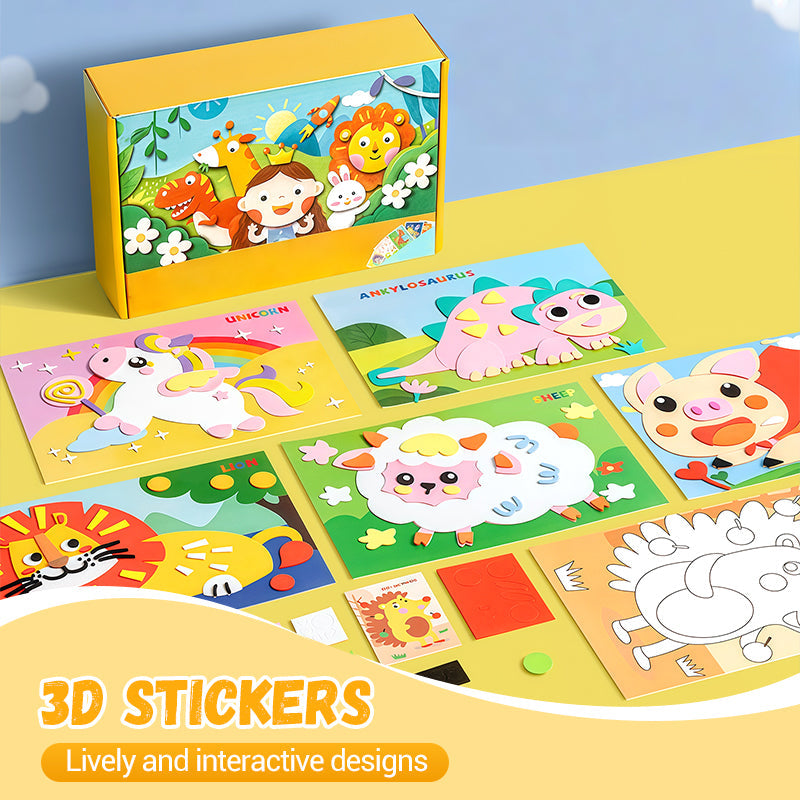 3D NÁLEPKY – Tato sada pro vlastní výrobu obsahuje trojrozměrné EVA nálepky, které dětem poskytují zábavný a interaktivní kreativní zážitek. Každá nálepka vystupuje z povrchu, což dětem umožňuje vytvářet živé scény a osobní umělecká díla. 3D efekt zvyšuje vizuální přitažlivost a stimuluje představivost, podporuje praktické učení a umělecké vyjádření hravou formou.