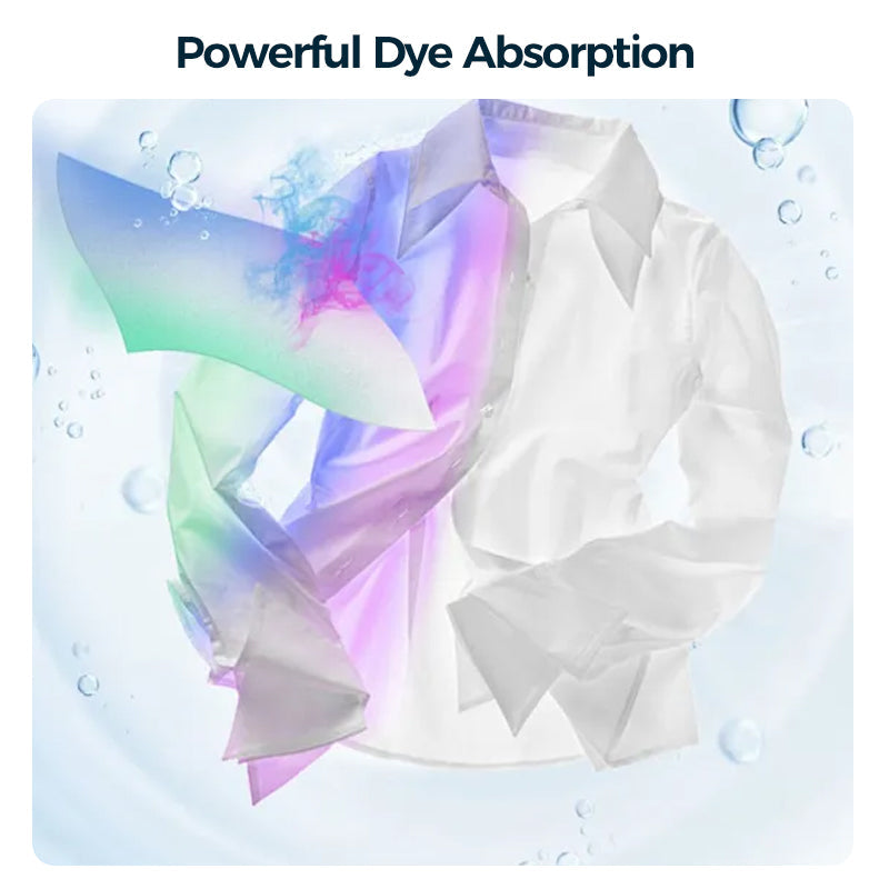 ÚČINNÁ ABSORPCE BARVIV: Zabraňuje vyblednutí barev tím, že zachycuje barviva uvolněná během praní. Nyní můžete bez obav prát bílé, světlé a barevné prádlo v jedné pračce, což vám ušetří čas a energii při praní.