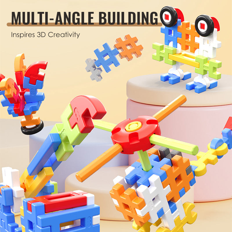 ZÁBAVA ZE VŠECH ÚHLŮ – Náš systém propojování z různých úhlů umožňuje dětem stavět nahoru, do stran a do všech směrů. Otevírá dveře k fantazijním 3D stavbám, které připomínají spíše dobrodružství než jednoduché skládání.