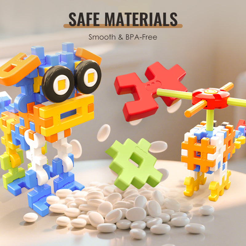 JEMNÝ DOTYK, BEZPEČNÁ ZÁBAVA, ŠŤASTNÉ DĚTI – Vyrobeno z ekologických materiálů bez BPA, každý blok je hladce vyleštěn pro jemné zacházení. Děti mohou stavět celé hodiny bez škrábanců, ostrých hran nebo obav rodičů.