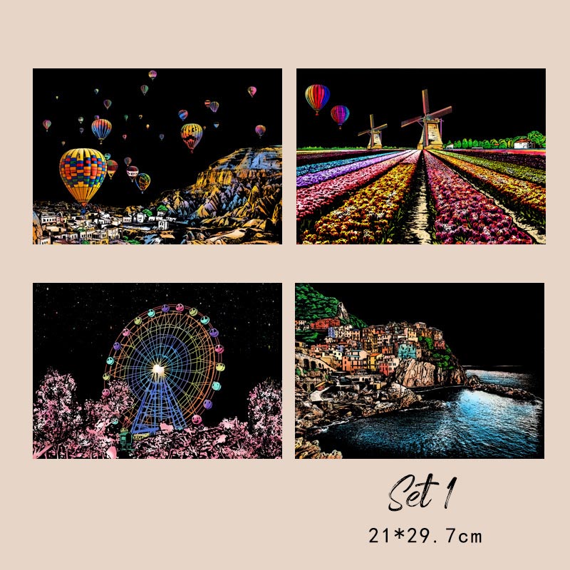 ZÁBAVNÁ A TVOŘIVÁ DIY UMĚLECKÁ ZÁŽITEK: Tato sada obsahuje 4 krásně navržené scény, které nabízejí zábavnou a relaxační tvůrčí činnost. Probuďte v sobě umělce a odhalte krásné městské scenérie škrábáním tmavého povlaku.