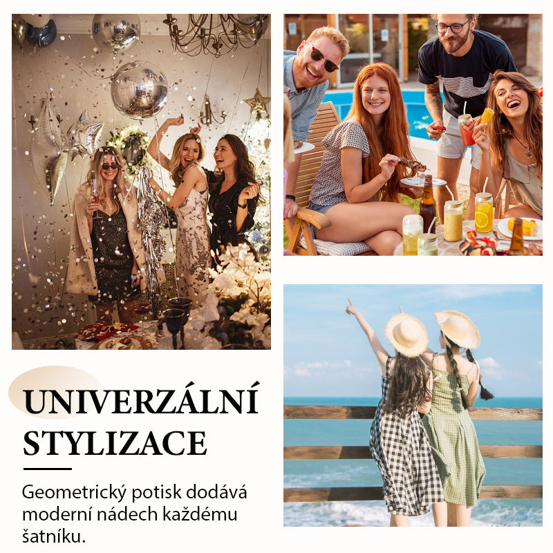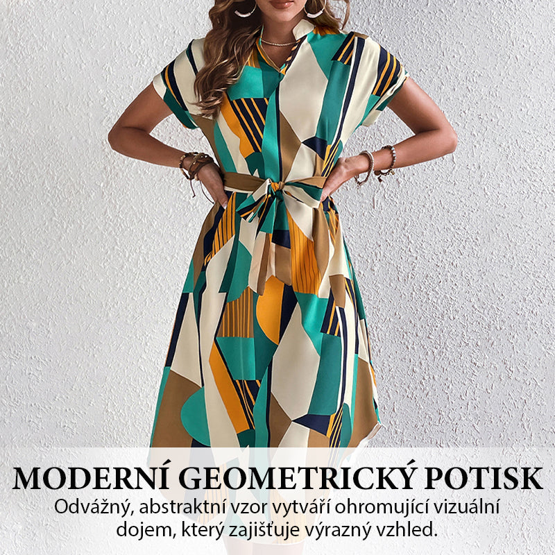 UNIVERZÁLNÍ STYLIZACE – Ideální jak pro profesionální prostředí, tak pro neformální vycházky, tyto šaty se snadno přizpůsobí se správnými doplňky. Geometrický potisk dodává moderní nádech každému šatníku.