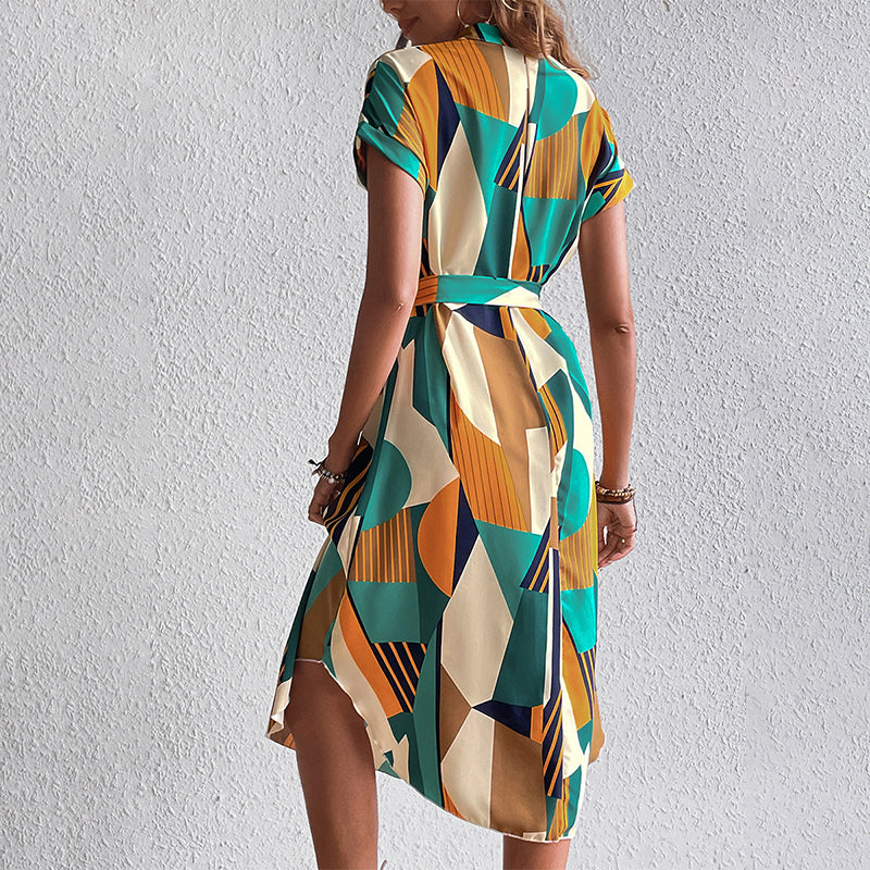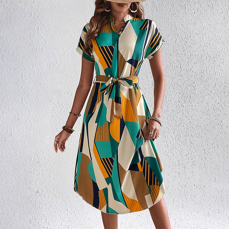 Balení obsahuje: 1 * Dámské šaty s geometrickým potiskem a páskem v pase