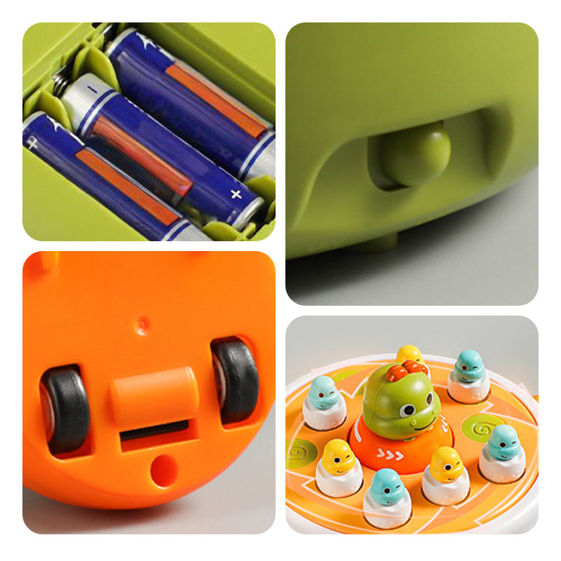 INTERAKTIVNÍ ZÁBAVA S ROTUJÍCÍ HUDBOU: Hrací plocha se otáčí o 360°, hraje veselá hudba a každé kolo je dynamické a napínavé, protože dinosauří vejce se náhodně odrážejí, což přináší prvek překvapení.