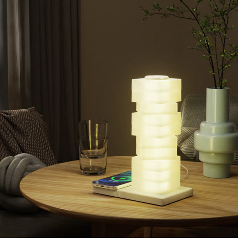 INTEGROVANÉ BEZDRÁTOVÉ NABÍJENÍ 15 W – Uspořádejte si noční stolek díky vestavěné rychlé bezdrátové nabíječce 15 W. Pohodlně nabijte svůj kompatibilní smartphone nebo sluchátka bez dalších kabelů, ať už je světlo zapnuté nebo vypnuté, a zajistěte si tak maximální pohodlí.
