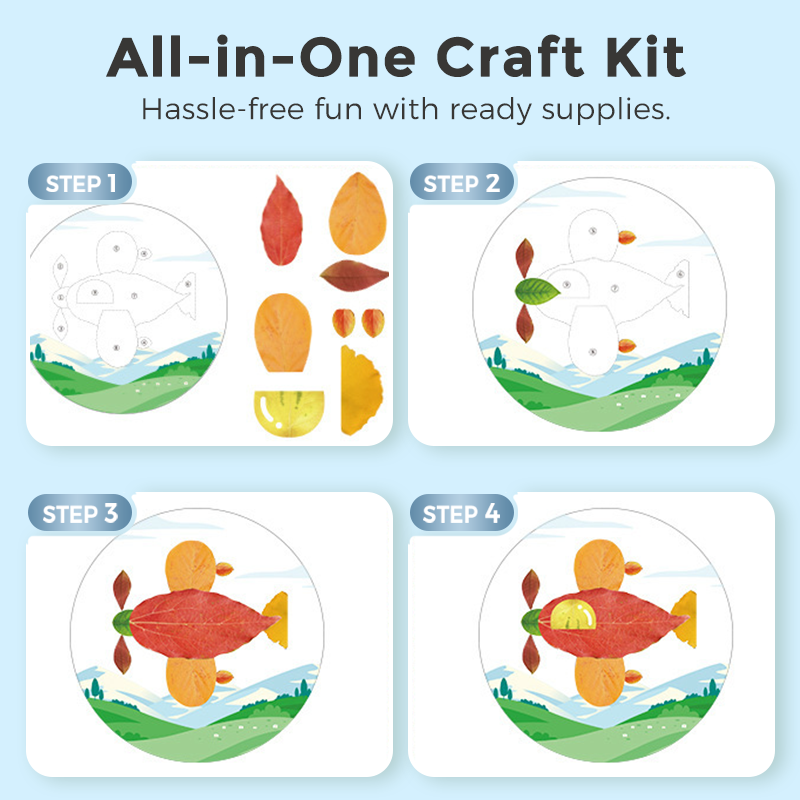 VODÍCÍ NÁVRHY PRO PODNĚCOVÁNÍ FANTASIE: S 12 vzorovanými základními kartami mohou děti postupovat podle podrobných pokynů nebo vymýšlet vlastní koláže z listů. Tento strukturovaný, ale zároveň otevřený přístup podporuje kreativitu a schopnost řešit problémy, díky čemuž je každé dílo jedinečné.