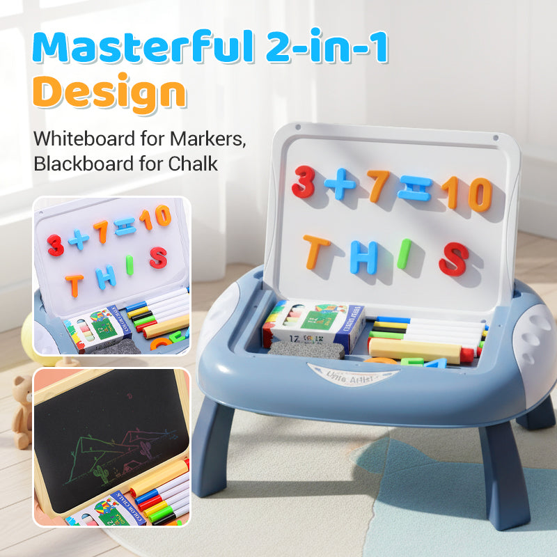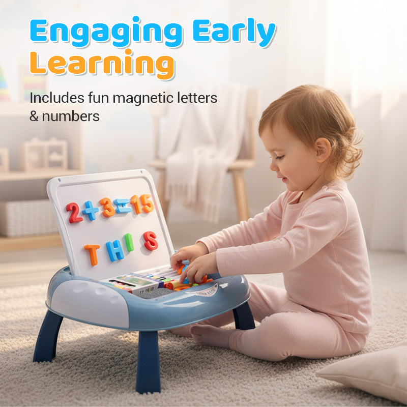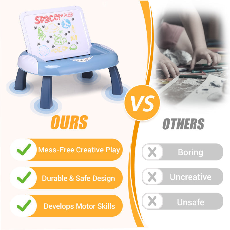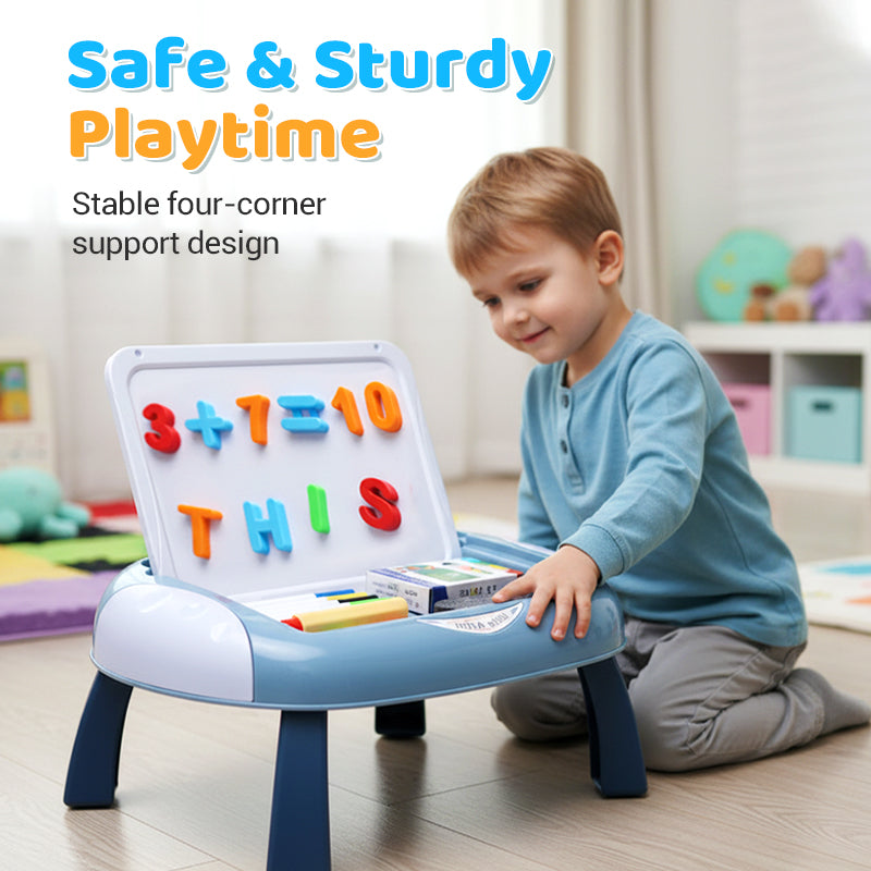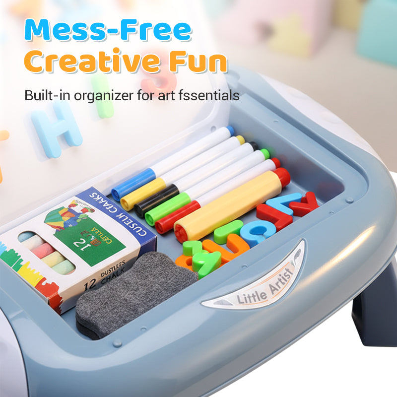 UNIVERZÁLNÍ DESIGN 2 V 1 – Tato kreslicí deska je vybavena připevnitelnými nožičkami, díky kterým se z přenosné podložky na klín promění v mini stoleček na hraní. Nabízí flexibilní možnosti hraní na podlaze, gauči nebo stole a přizpůsobí se jakémukoli prostředí.