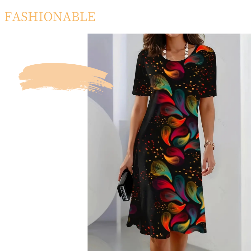 ŽIVÝ TISKOVÝ DESIGN: Tyto šaty se vyznačují živým, ale vyváženým potiskem, který dodá vašemu každodennímu šatníku nádech osobnosti. Celoplošný vzor přitahuje pozornost, takže jsou ideální pro neformální výlety, víkendové pochůzky nebo uvolněné společenské události.