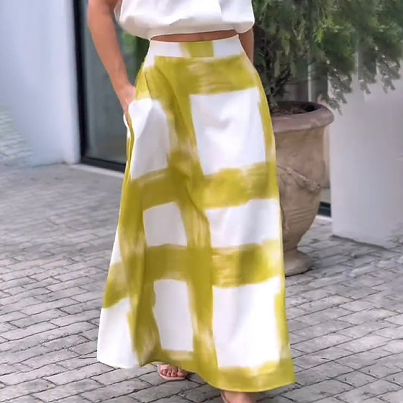 Módní kostkovaný potisk - Díky výraznému velkému kostkovanému vzoru dodává tato sukně moderní nádech a zároveň si zachovává klasický, nadčasový vzhled. Je ideální pro vyjádření svého stylu a udržení se v trendu.