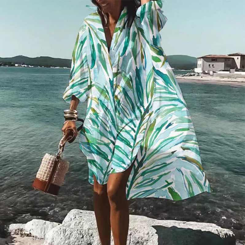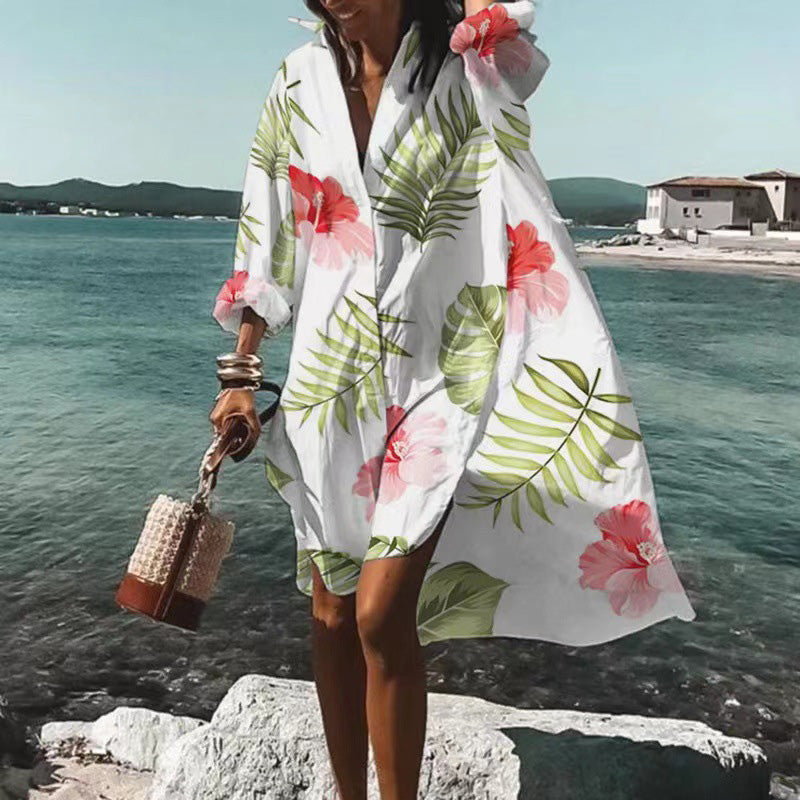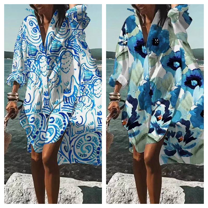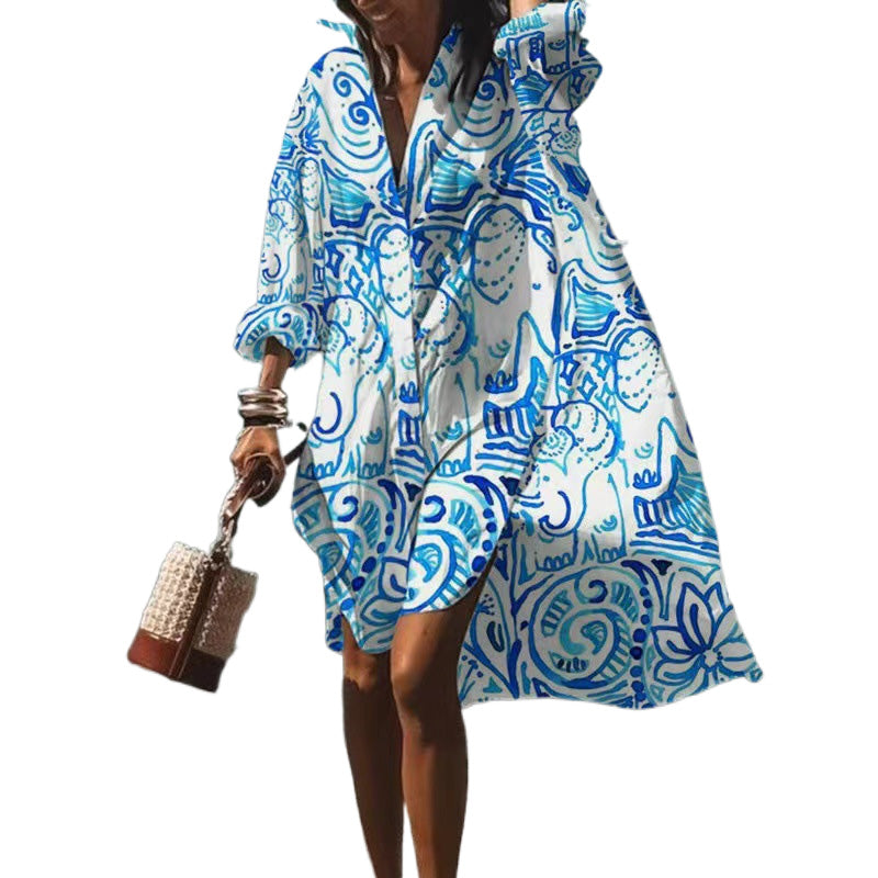 👗Módní šaty s potiskem a dlouhými rukávy