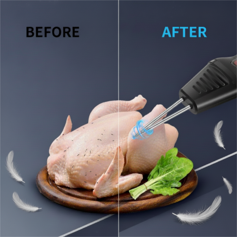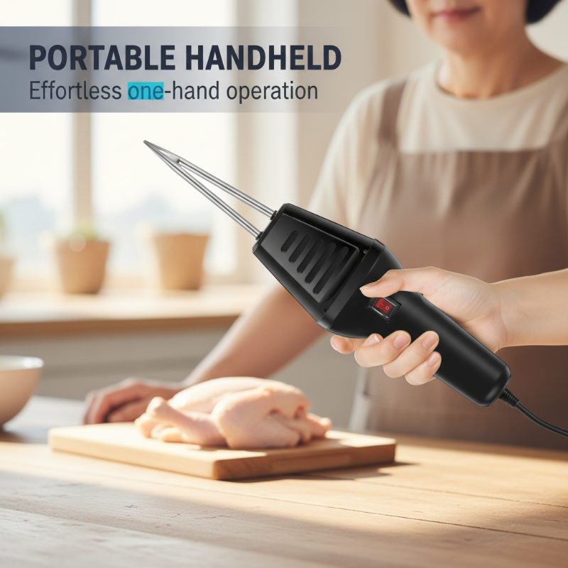 PŘENOSNÝ DESIGN: Tento ruční škrabák umožňuje snadné ovládání jednou rukou pro snadnou přípravu drůbeže. Je kompaktní, bezdrátový a vybavený vestavěnou dobíjecí baterií, takže se snadno skladuje a používá kdekoli.