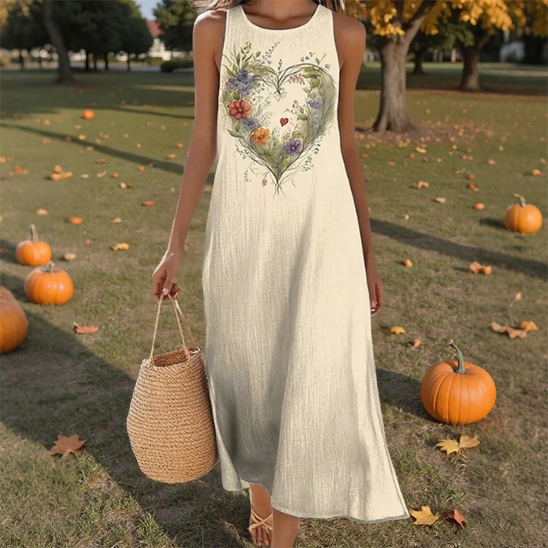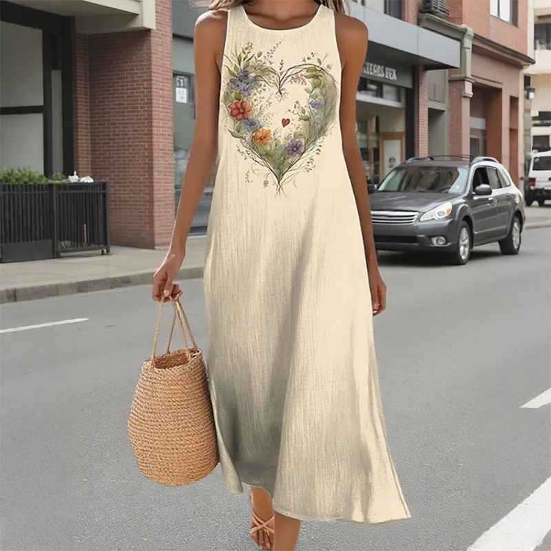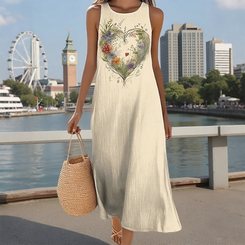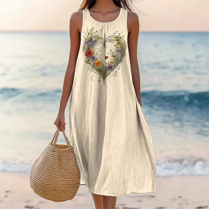 NEÚSILNÝ ELEGANTNÍ STYL – Otočte hlavy s lehkostí. Udělejte elegantní dojem, kamkoli se vydáte, v těchto šatech s květinovým potiskem a siluetou srdce. Výrazný motiv srdce v kombinaci s živými květinovými akcenty vyzařuje hravou eleganci. Volný a splývavý střih dodává šatům ležérní sebevědomí – jsou ideální na brunch, víkendové výlety nebo procházky po pláži.