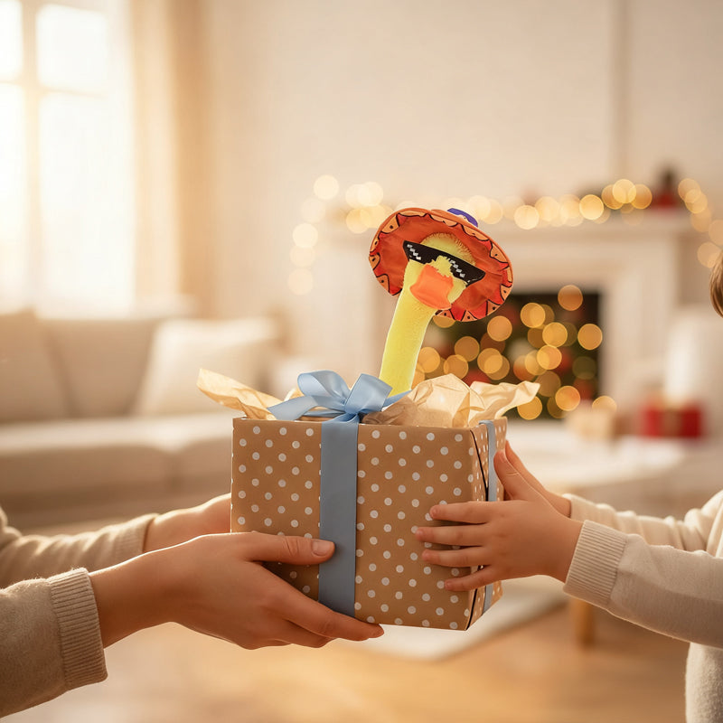 TANČÍCÍ KACHNA V KACHNÍM KOSTÝMU – Sledujte, jak ožívá zábava! Díky vestavěným písničkám a groovovým tanečním pohybům ví tato kachna, jak na sebe strhnout pozornost. Rozhýbe malé nožičky, inspiruje k rytmu a naplní každou místnost veselou energií a radostnými rytmy.