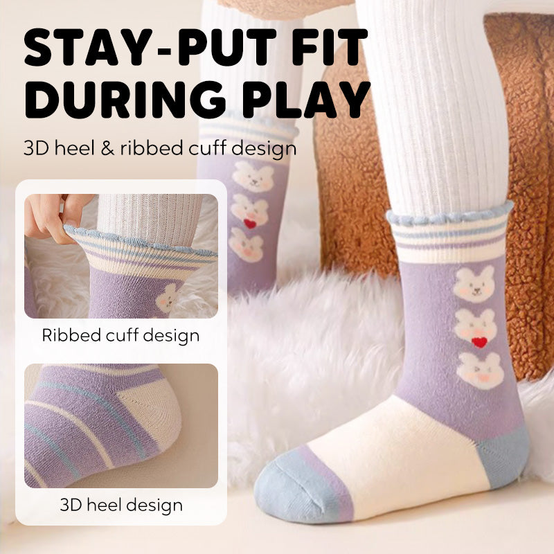 NEKLOUZAVÉ ŽEBROVANÉ MANŽETY: Jemné žebrované manžety jsou navrženy pro aktivní děti a zajišťují bezpečné uchycení, aniž by byly příliš těsné. Tyto ponožky pohodlně drží na místě po celý den, od třídy až po hřiště.