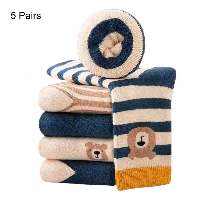Balení obsahuje: 1 * 5 párů dětských teplých ponožek s motivy z kreslených filmů