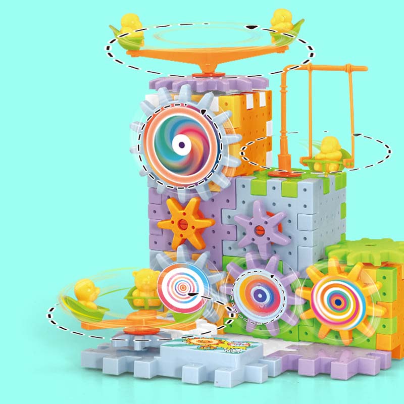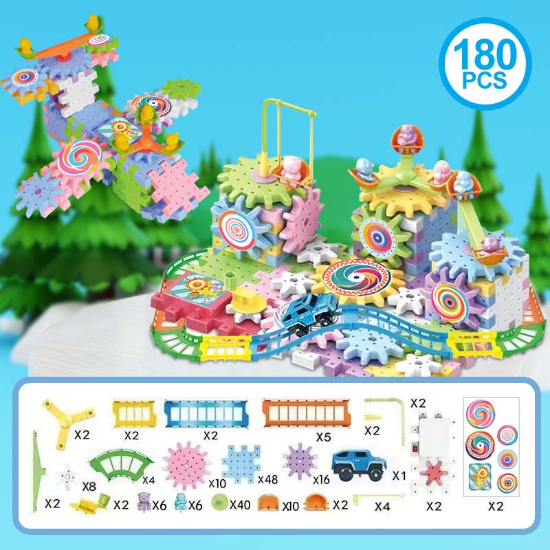 NEKONEČNÁ TVOŘIVOST – Jděte nad rámec jednoduchého skládání. Tato dynamická stavebnice umožňuje dětem stavět složité pohyblivé konstrukce s ozubenými koly a kolejemi, což podněcuje jejich představivost k vytváření všeho možného, od kolotočů až po celé zábavní parky.