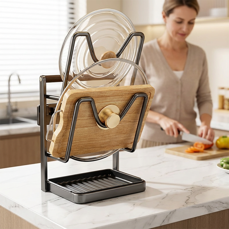 VÍCEÚROVŇOVÁ ORGANIZACE: Zajišťuje přehledné skladování různých pokliček a krájecích desek, čímž okamžitě vytváří pořádek v kuchyni a usnadňuje hledání potřebných nástrojů, když je potřebujete.