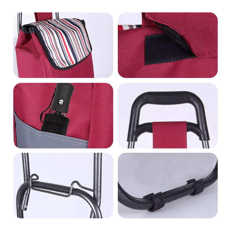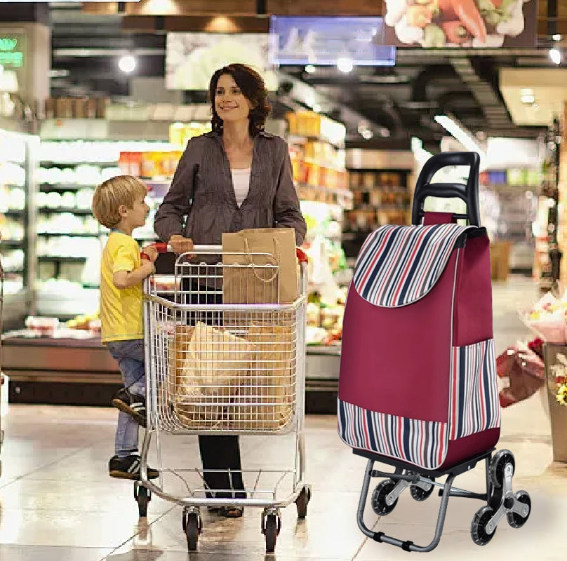 LEHKÝ A ERGONOMICKÝ: Tento vozík je navržen tak, aby byl pohodlný a snadno ovladatelný, což snižuje únavu při přepravě, a je proto ideální pro seniory, nakupující a rozvážkové služby.