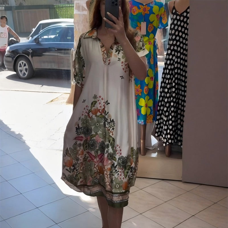 PŘIROZENĚ VYSTUPUJTE - Květinový potisk dodává šarm. Tyto šaty s celoplošným květinovým vzorem vystihují ducha nenucené ženskosti. Zářivé potisky evokují nadčasový půvab a zároveň dělají dojem, aniž by byly přeplácané. Ať už se procházíte parkem nebo se setkáváte s přáteli, design dodává vizuální zajímavost a umělecký půvab.
