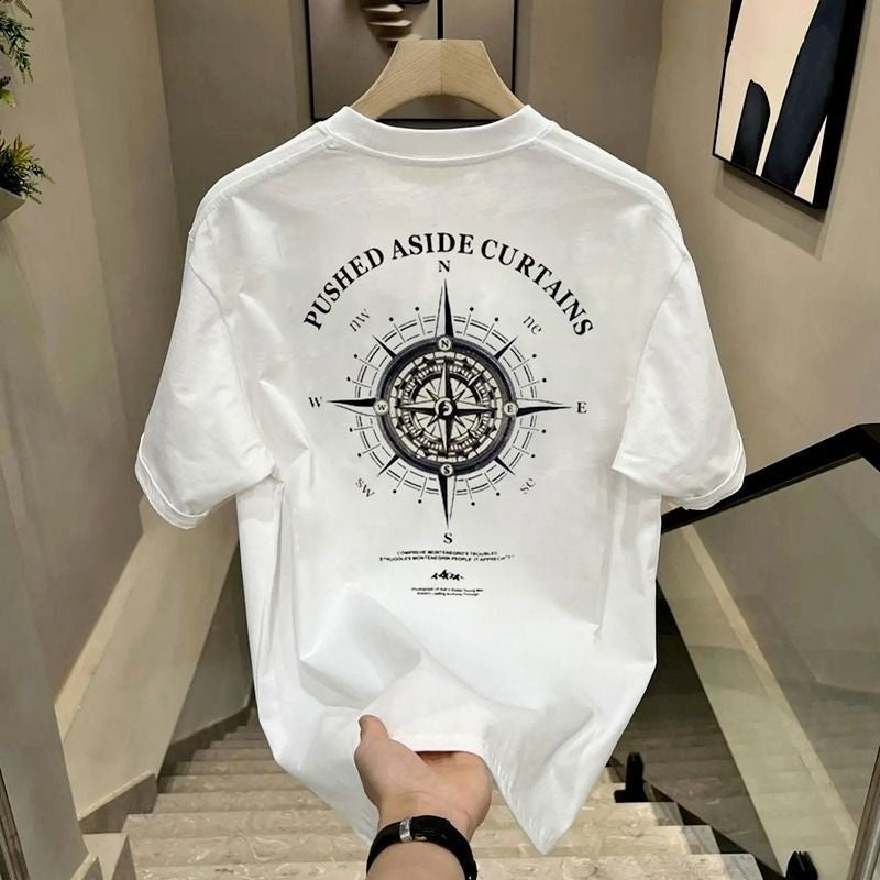 OBOUSTRANNÝ POTISK: Objevte jedinečný stylový prvek v podobě potisku kompasu na přední a zadní straně v kontrastních velikostech. Minimalistické logo na hrudi dodává tričku nenápadný šarm, zatímco výrazný potisk na zadní straně z něj dělá výrazný streetwearový kousek.