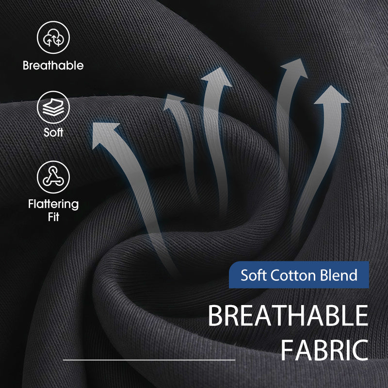 PRODYŠNÁ TKANINA: Vyrobeno z měkké, příjemné bavlněné směsi, která zajišťuje celodenní pohodlí. Lehká, prodyšná tkanina odvádí vlhkost a je odolná proti zmačkání, takže se snadno udržuje.