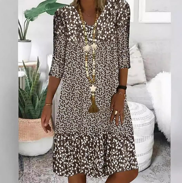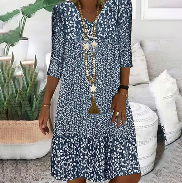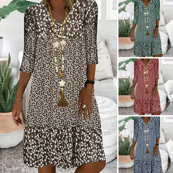 Balení obsahuje: 1* Dámské módní šaty s potiskem, středně dlouhé rukávy, výstřih do V