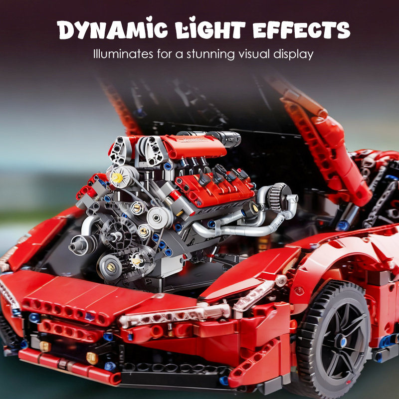 REALISTICKÝ MECHANICKÝ PROVOZ – Podívejte se na vnitřní fungování přes průhledné součásti, jak se pohybují písty a otáčejí řetězy. Tato detailní simulace fungování motoru V8 poskytuje vzrušující pohled do složitých mechanických systémů.