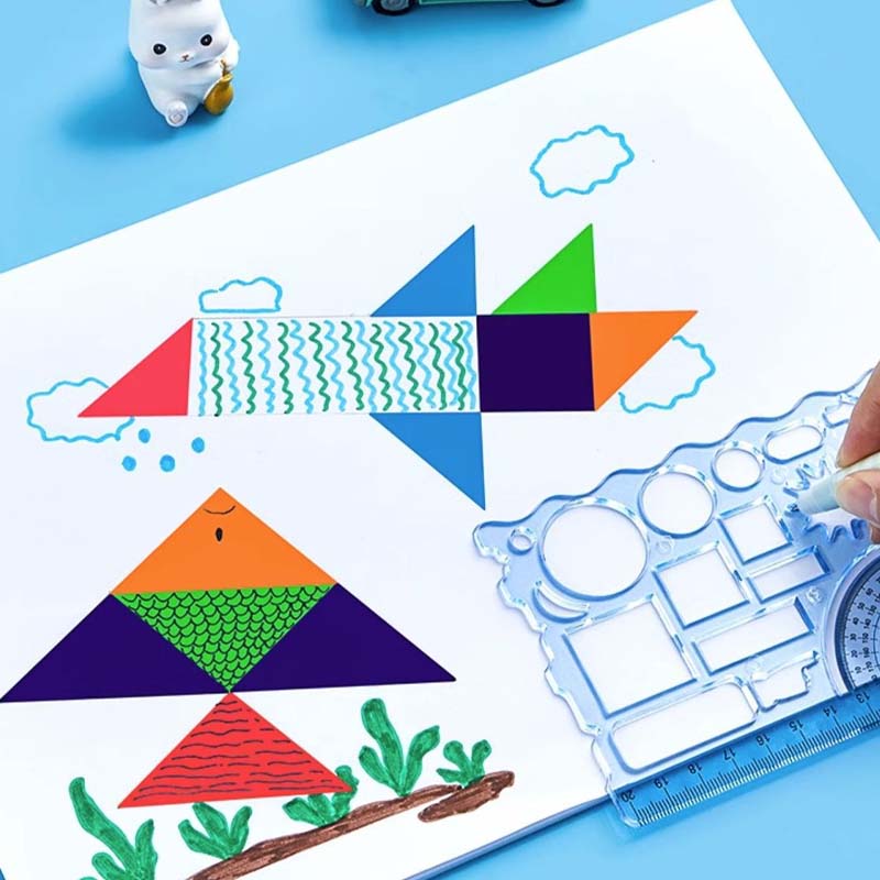 KREATIVNÍ GEOMETRICKÉ VZORY: Obsahuje řadu standardních tvarů a jedinečných vzorů pro snadné vytváření vzorů. Pomáhá dětem i dospělým rozvíjet fantazii, podporuje umělecké vyjádření, geometrické kreslení a dekorativní ilustrace.