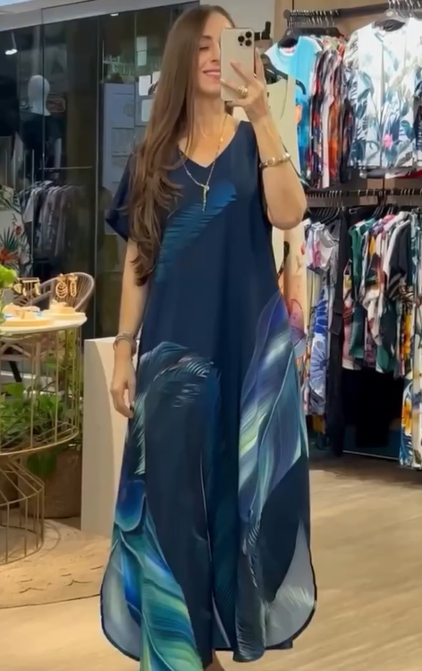 👗 Dámské vzdušné šaty s krátkým rukávem a potiskem do V! Lehké, vzdušné a velmi stylové.