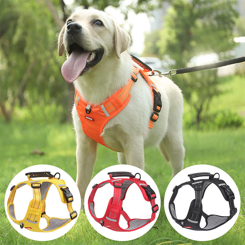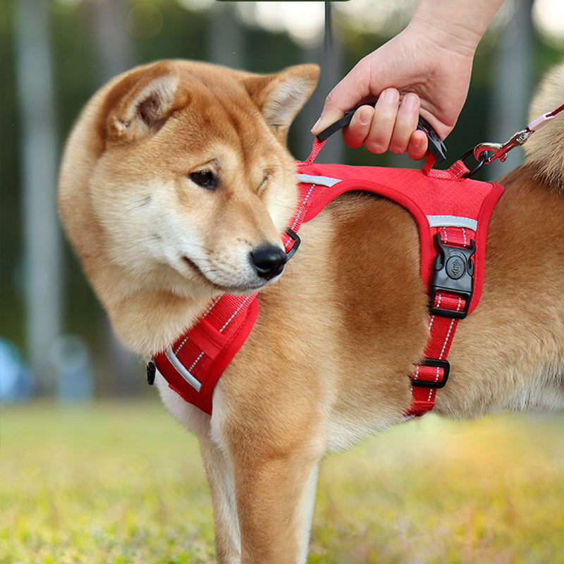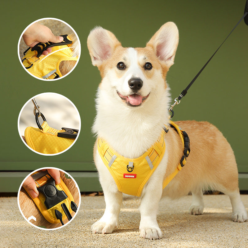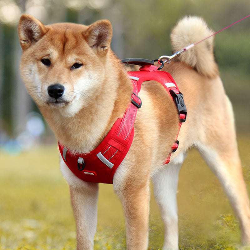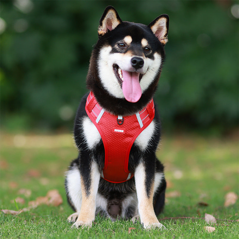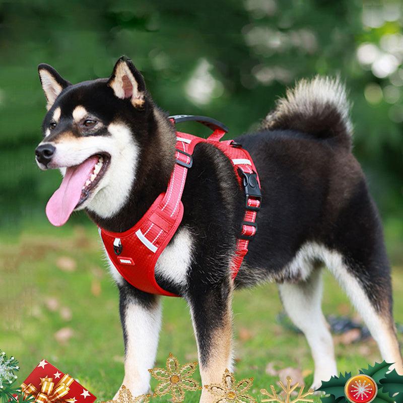 Tato reflexní nastavitelná psí vesta bez tahání je skvělou volbou pro malé až velké psy, jako jsou zlatí retrívři, husky, labradoři, aljašští psi, němečtí ovčáci a akity. Je navržena s širokou rukojetí na zádech pro lepší kontrolu a rychloupínací sponou pro snadné nasazování a sundávání. Postroj je také vybaven reflexním materiálem pro lepší viditelnost ve tmě a odolnou, lehkou a prodyšnou tkaninou.