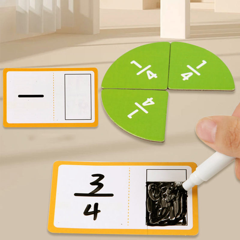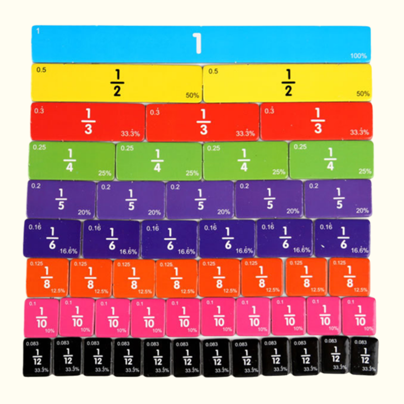 ZVLÁDNUTÍ FRAKCE PROSTŘEDNICTVÍM PRAKTICKÉHO UČENÍ – Sada obsahuje 4 desky na rozklad zlomků a 22 oboustranných karet, které dětem umožňují fyzicky si představit zlomky a manipulovat s nimi. Tento hmatový přístup posiluje porozumění, konkretizuje abstraktní pojmy a zlepšuje jejich zapamatování.