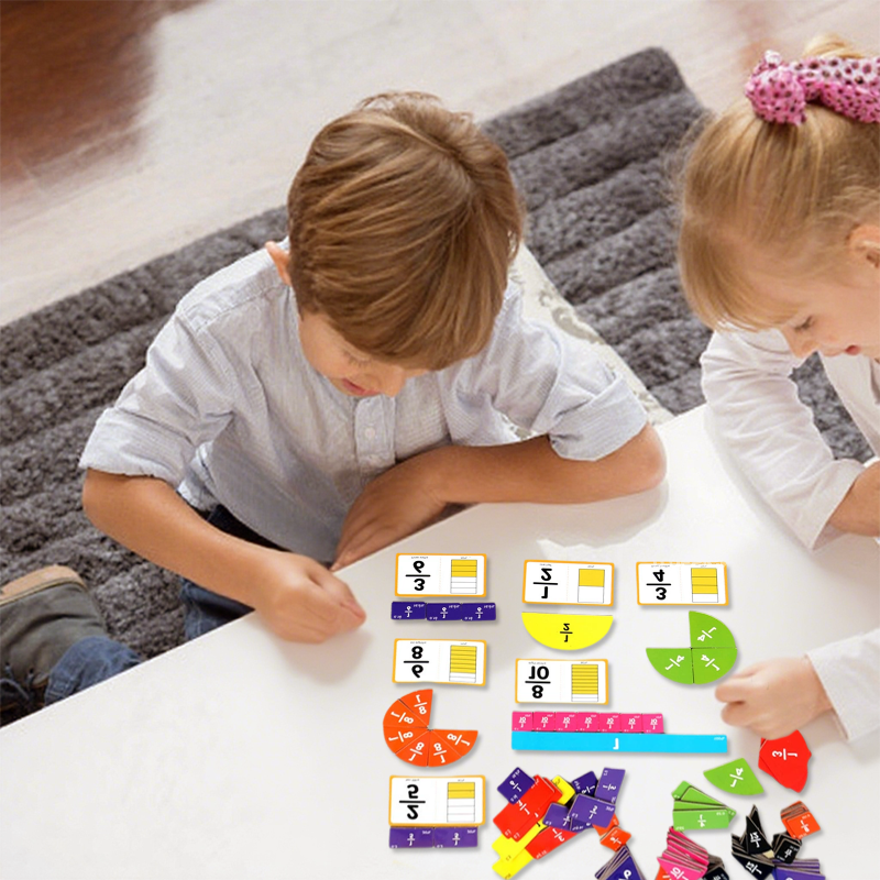 ZLEPŠUJE ROZPOZNÁVÁNÍ BAREV A LOGICKÉ MYŠLENÍ – Živé, barevně odlišené komponenty pomáhají dětem spojovat zlomky s vizuálními náznaky, posilují rozpoznávání barev a zároveň rozvíjejí logické sekvenční dovednosti. Postupná obtížnost karet zajišťuje neustálou výzvu.