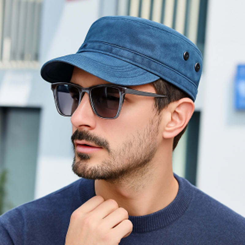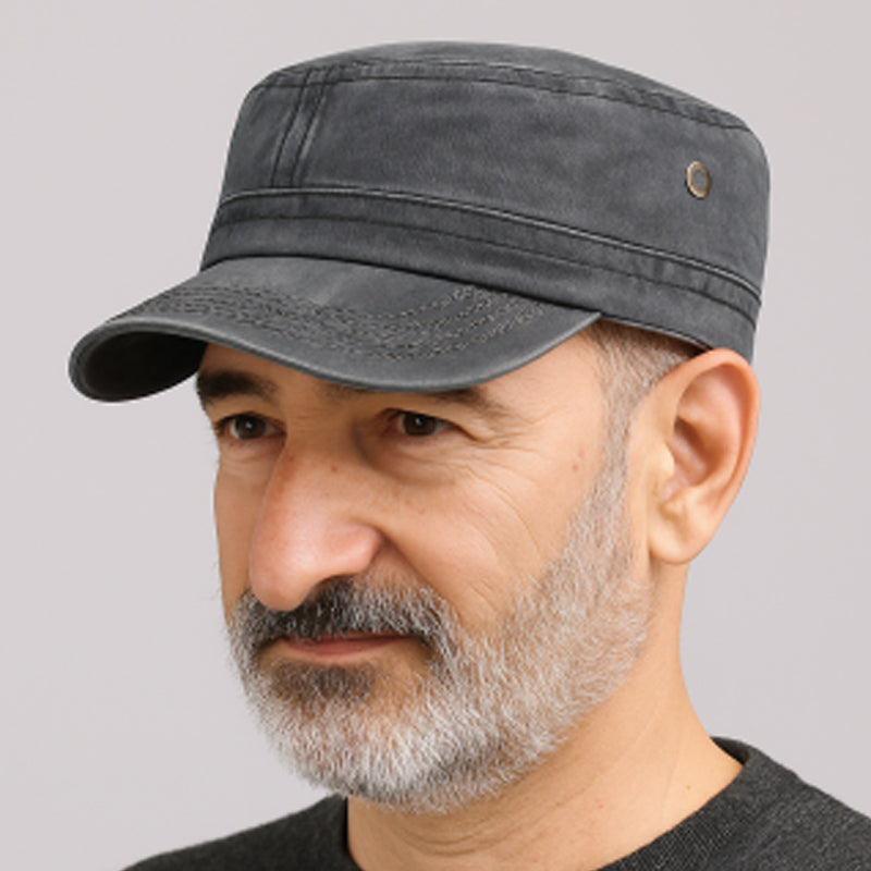 DRSŇÁCKÝ VZHLED, NADČASOVÁ PŘITAŽLIVOST - Vyjádřete svou autoritu touto kšiltovkou s plochým vrcholem, která vychází z vojenského designu. Čisté linie a strukturovaný tvar dodávají odvážný, praktický styl. Je to dokonalé spojení klasické užitečnosti a moderního stylu.