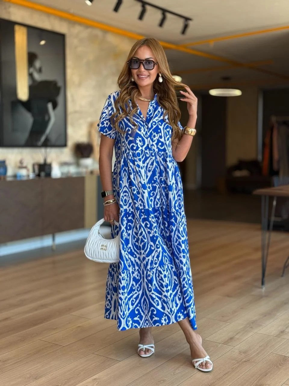 Tyto šaty mají živý, ale vyvážený potisk, který vnese do vašeho každodenního šatníku nádech osobitosti. Celoplošný vzor dodává šatům vizuální zajímavost, takže jsou ideální na běžné vycházky, víkendové pochůzky nebo neformální společenské akce.