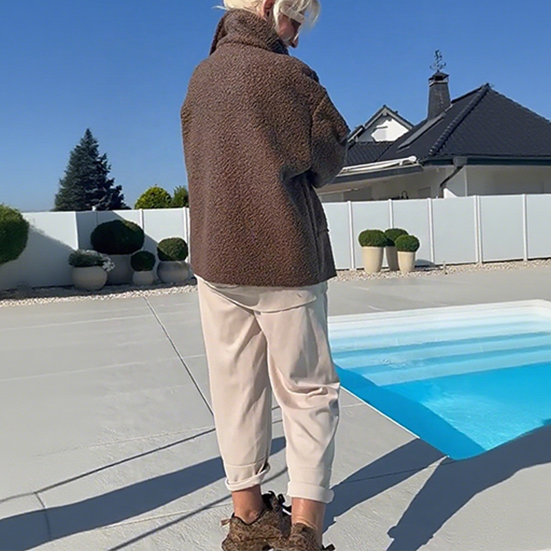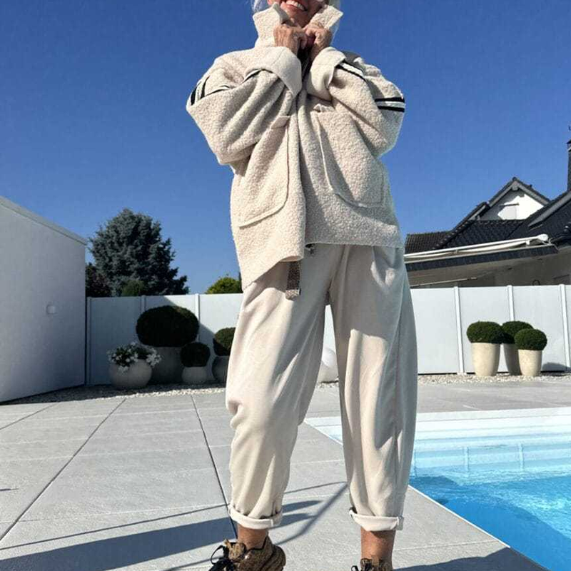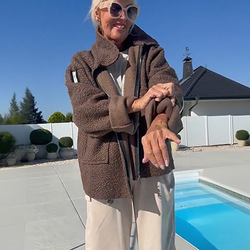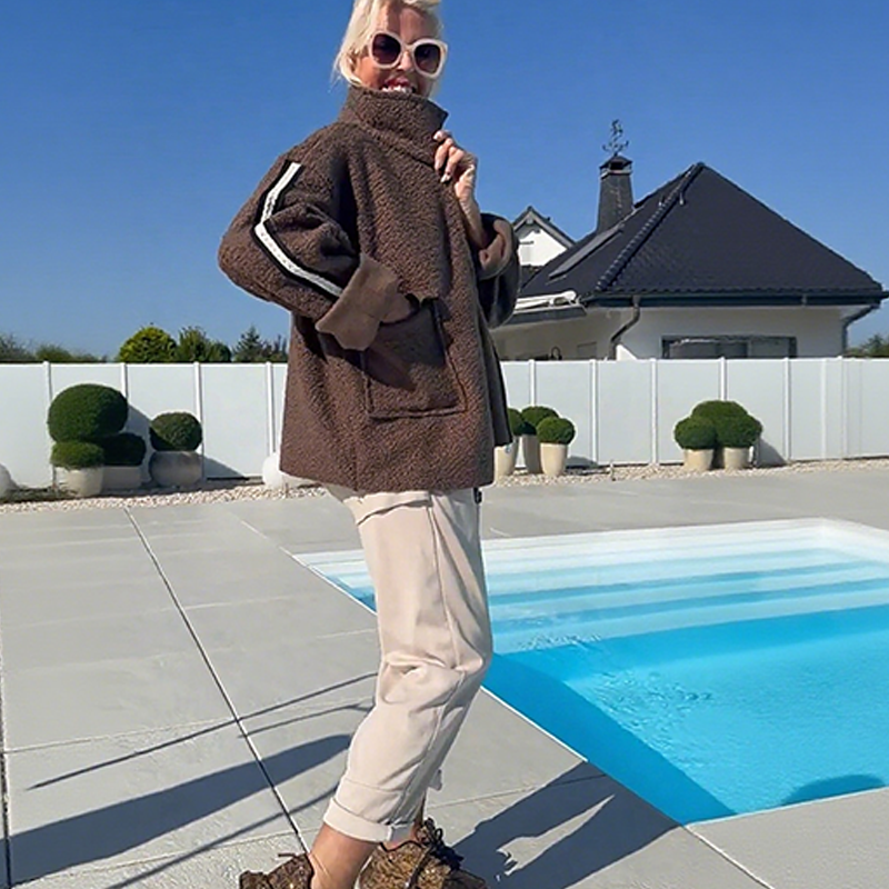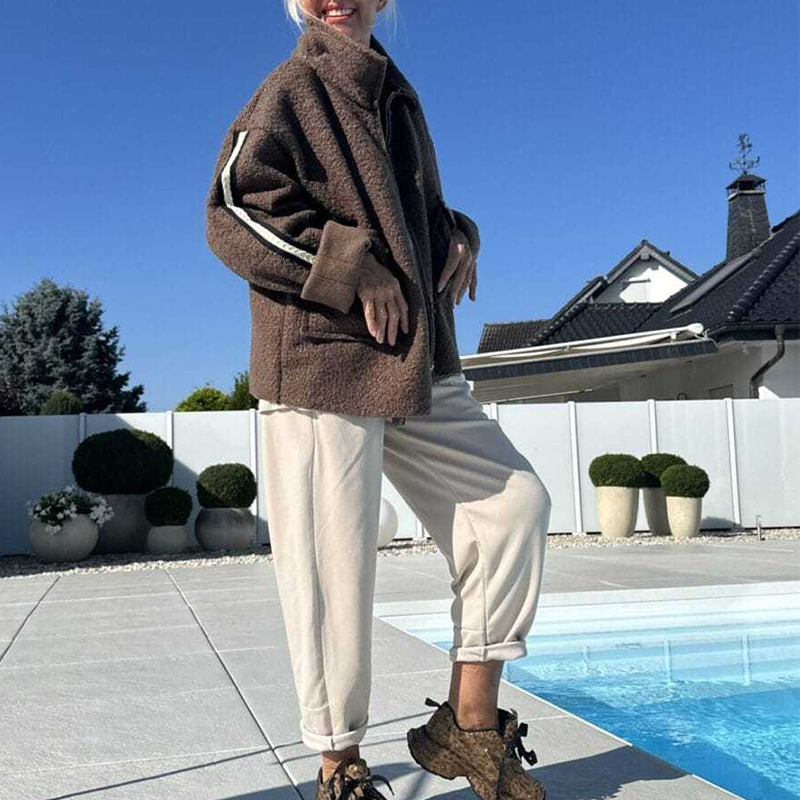 PREMIUM UMĚLÁ KOŽEŠINA – Zažijte luxusní pocit a teplo vysoce kvalitní umělé kožešiny. Měkká vnitřní podšívka vytváří příjemnou bariéru proti chladnému větru a zároveň zachovává prodyšný komfort, což je ideální pro přechodné počasí a chladné městské prostředí.