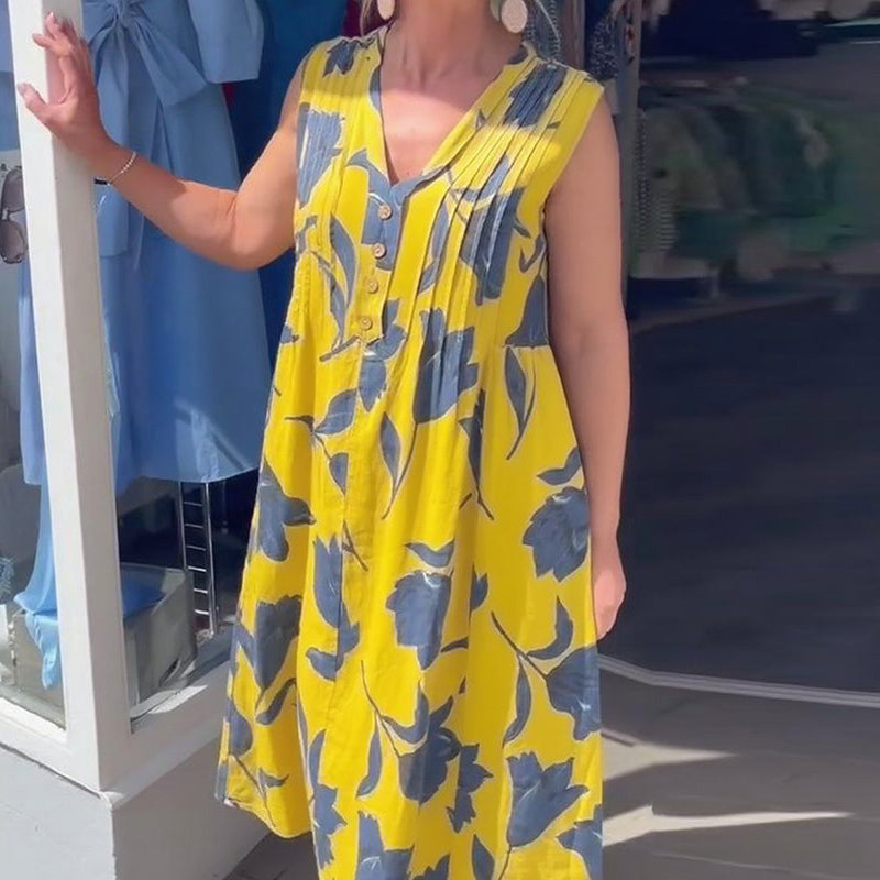 ELEGANTNÍ KVĚTINOVÝ POTISK – Tyto bezrukávové maxi šaty se vyznačují nadčasovým květinovým potiskem, který se perfektně hodí pro neformální události. Díky zářivým barvám a jemnému vzoru budete zaručeně vynikat a dodáte každé příležitosti elegantní nádech.