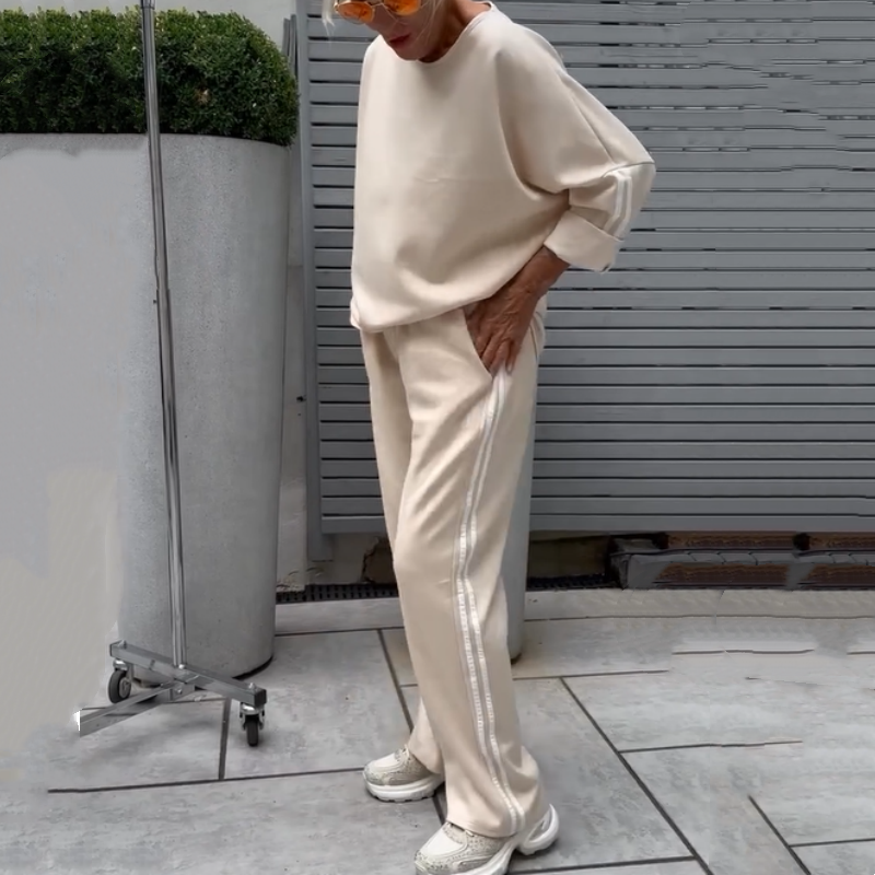 SPORTovní DESIGN S BOČNÍMI PRUHY: Tato sada se vyznačuje kontrastními bočními pruhy, které dodávají sportovní, ležérní vzhled a zvyšují flexibilitu pohybu, čímž vnášejí nádech módy do každodenního ležérního stylu.