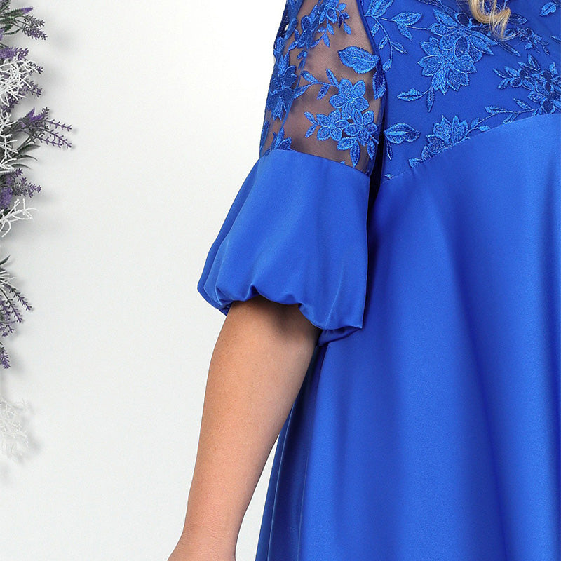 KRAJKOVÝ DETAIL NA RAMENI – Jemné krajkové akcenty na ramenou zlepšují proudění vzduchu a zároveň dodávají jemný ženský půvab. Díky tomuto lehkému detailu jsou šaty prodyšné a působí lehce a elegantně - ideální pro teplejší dny, kdy chcete mít styl bez větší váhy.