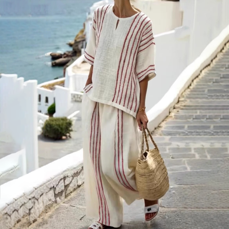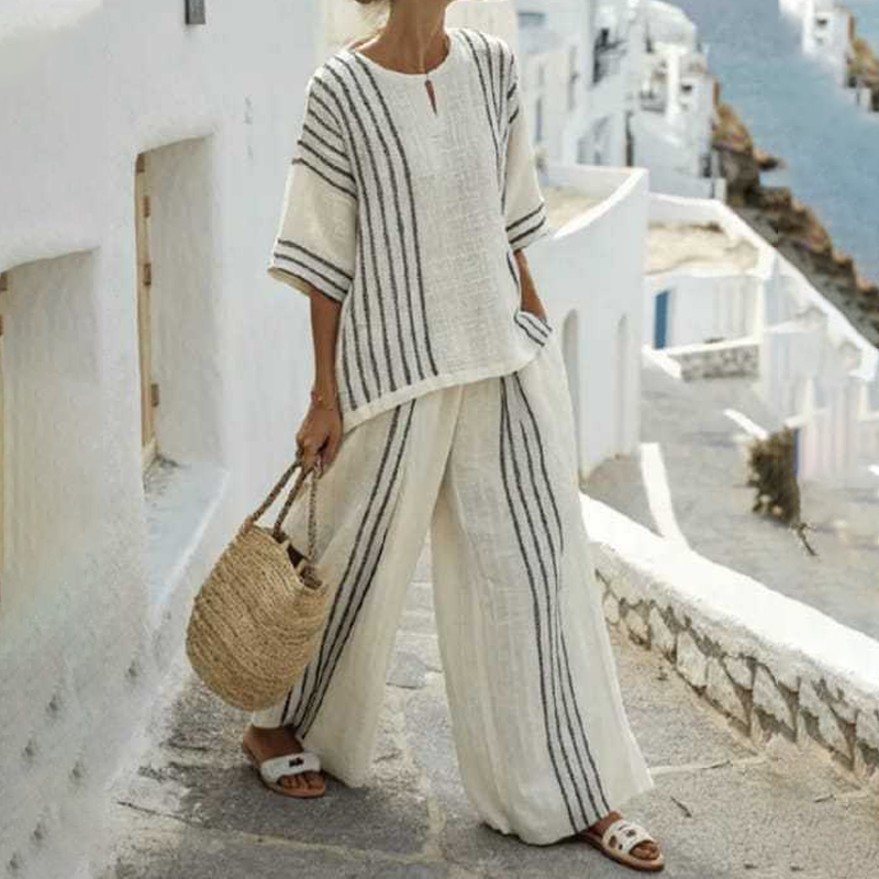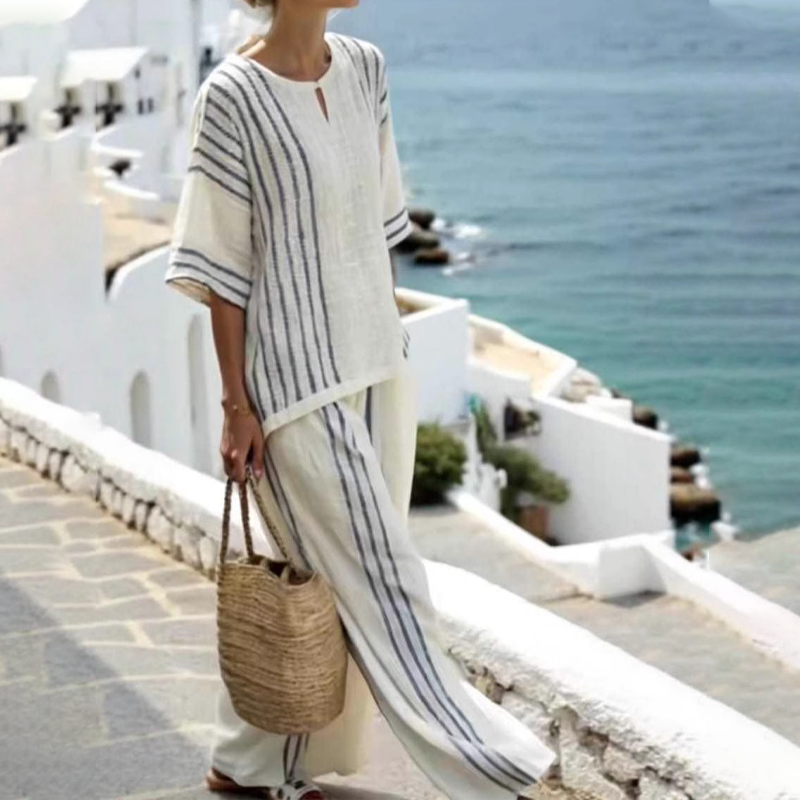 Balení obsahuje:1* Dámský ležérní pruhovaný top a kalhoty 2-dílná sada