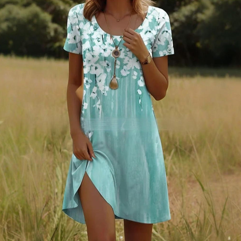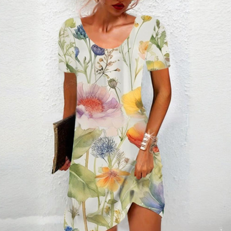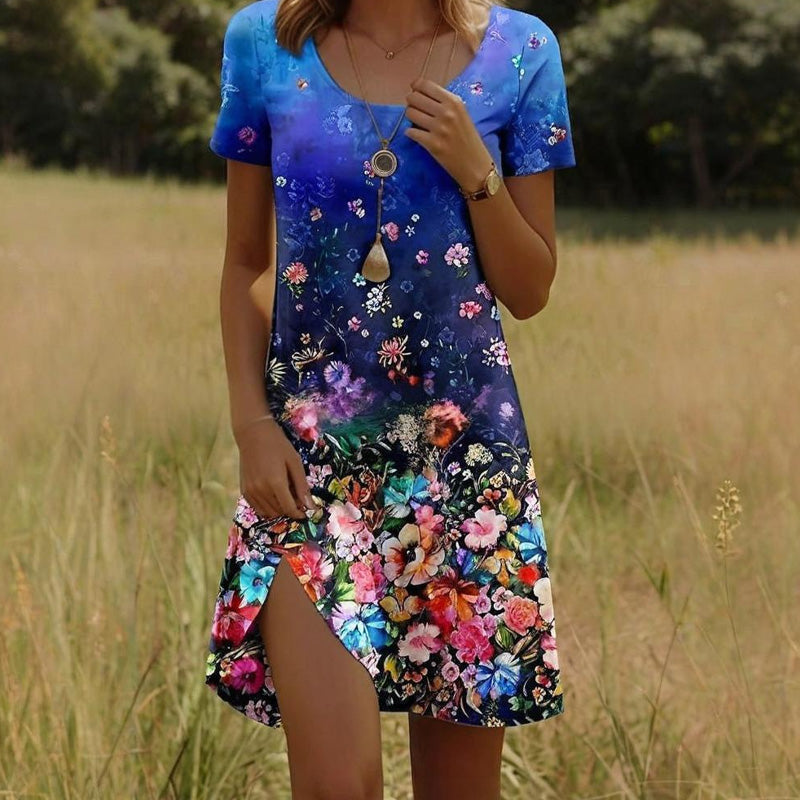 KRÁSA PŘÍRODY V KAŽDÉM STEHU - Nechte tyto šaty, aby se staly vaším plátnem - živé květy rozkvétají na látce jako zahrada ozářená sluncem. Každý jemný okvětní lístek a táhnoucí se liána šeptají o letní romantice bez námahy, ideální na pikniky nebo koktejly při západu slunce.