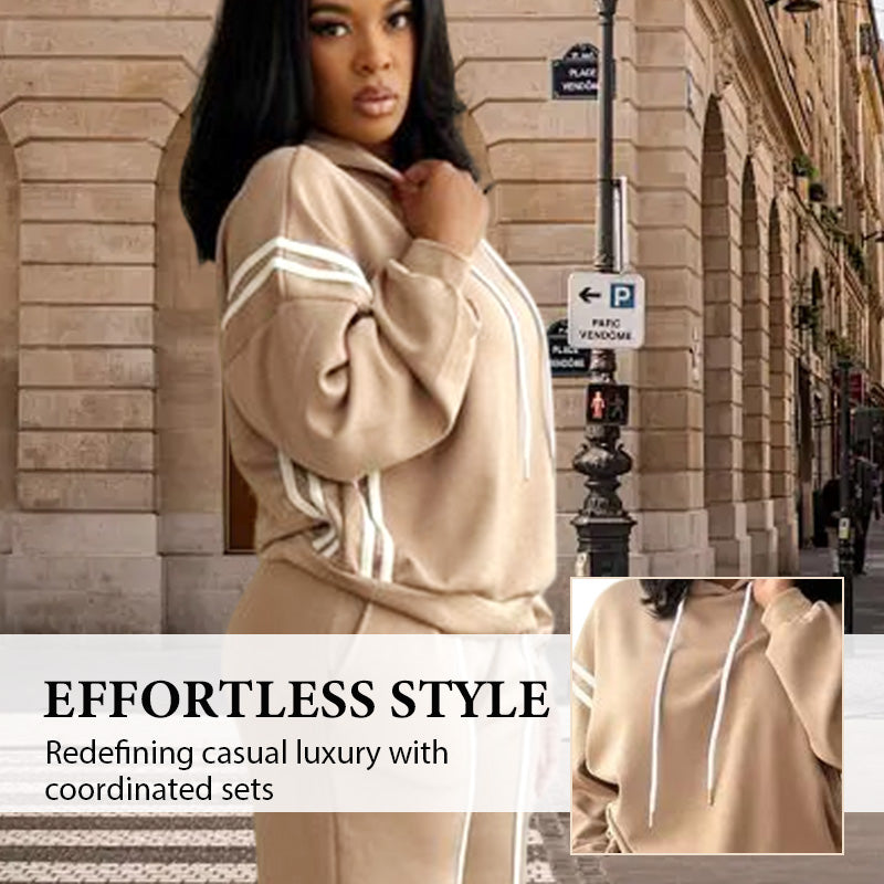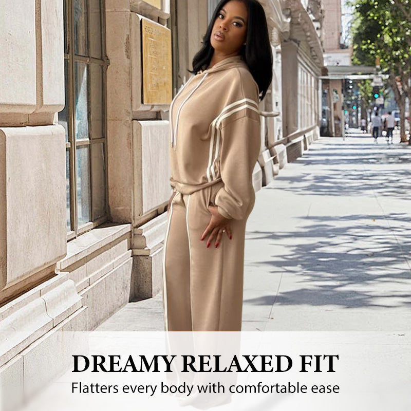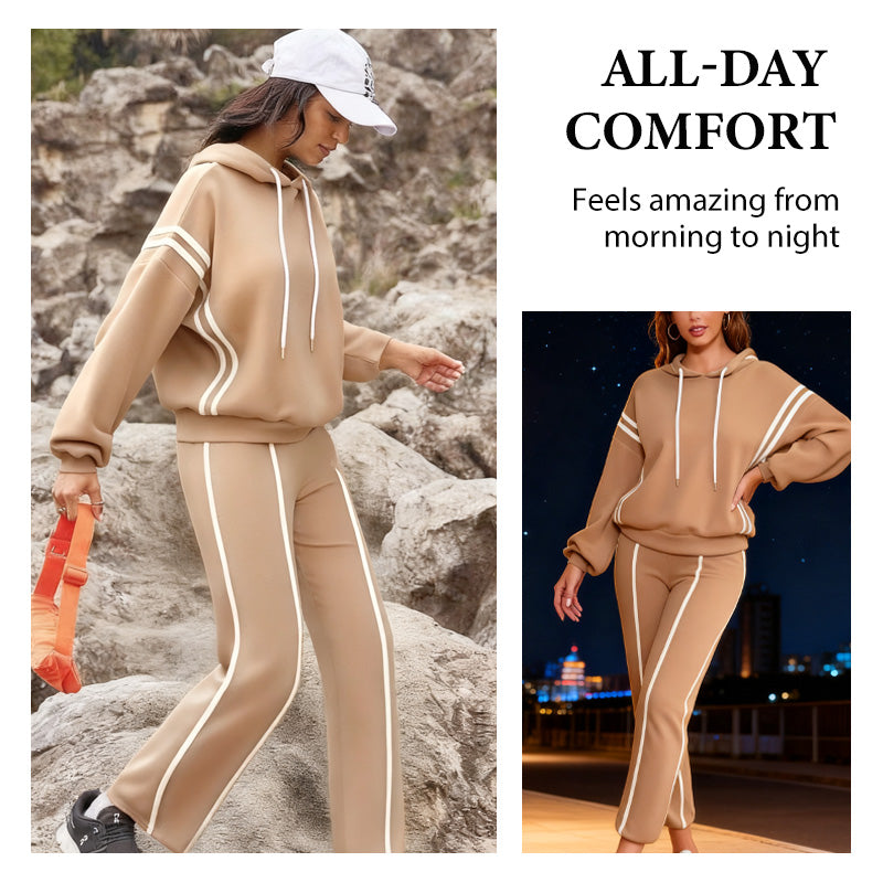 NEÚSILNÝ STYL, VYŠŠÍ POHODLÍ – Tato prémiová dvoukombinace přináší nový pohled na ležérní luxus. Zapomeňte na nemoderní teplákové soupravy! Sladěná mikina s kapucí a široké kalhoty vytvářejí elegantní, ucelený vzhled, který je stejně pohodlný jako vaše oblíbené domácí oblečení.