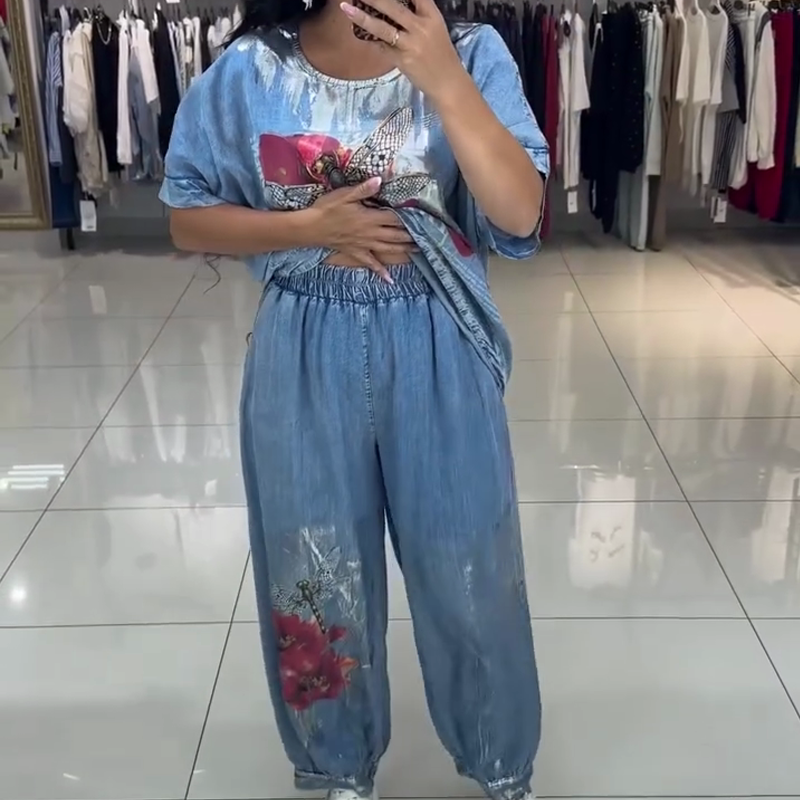 1 * Dámský set s potištěným topem a kalhotami